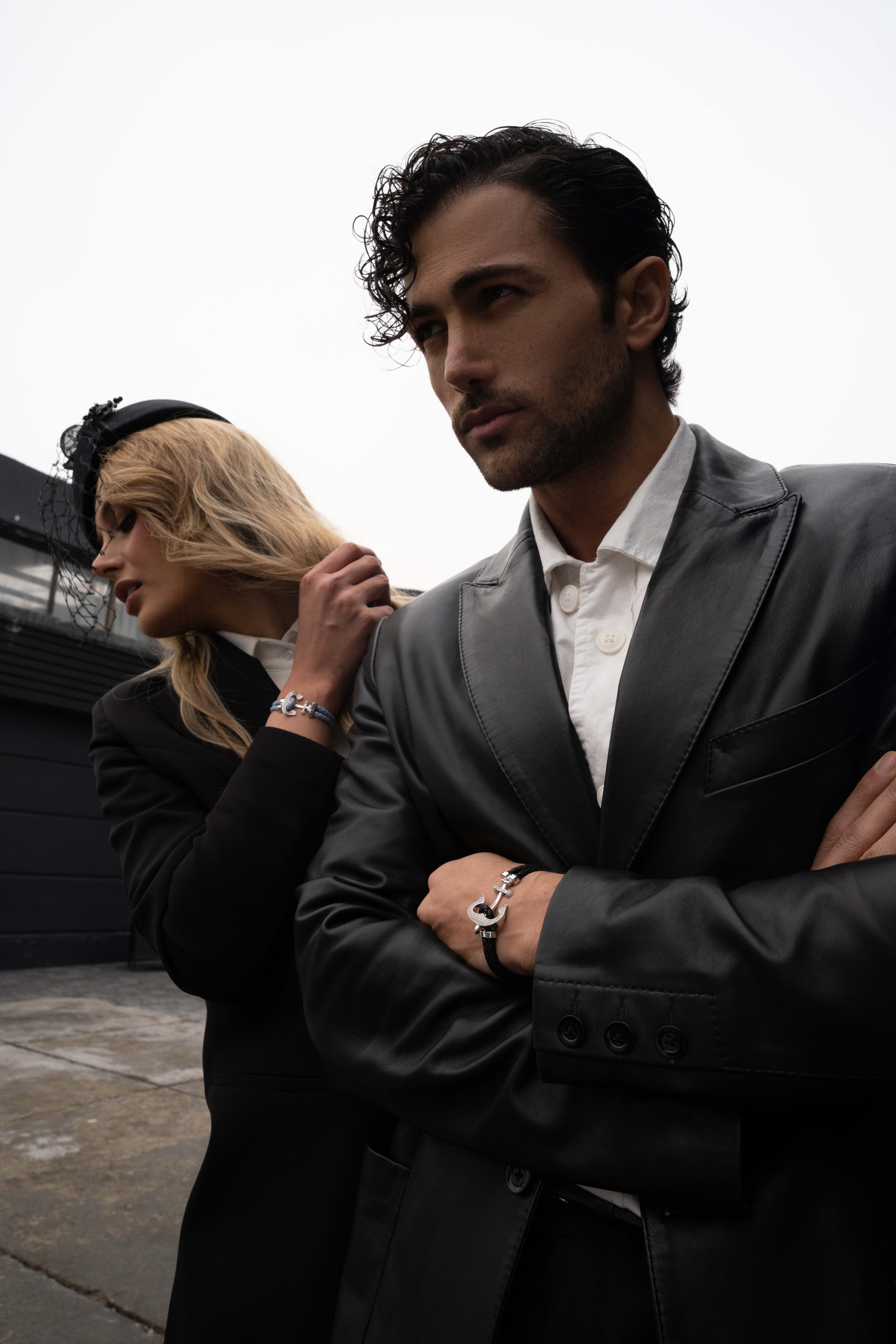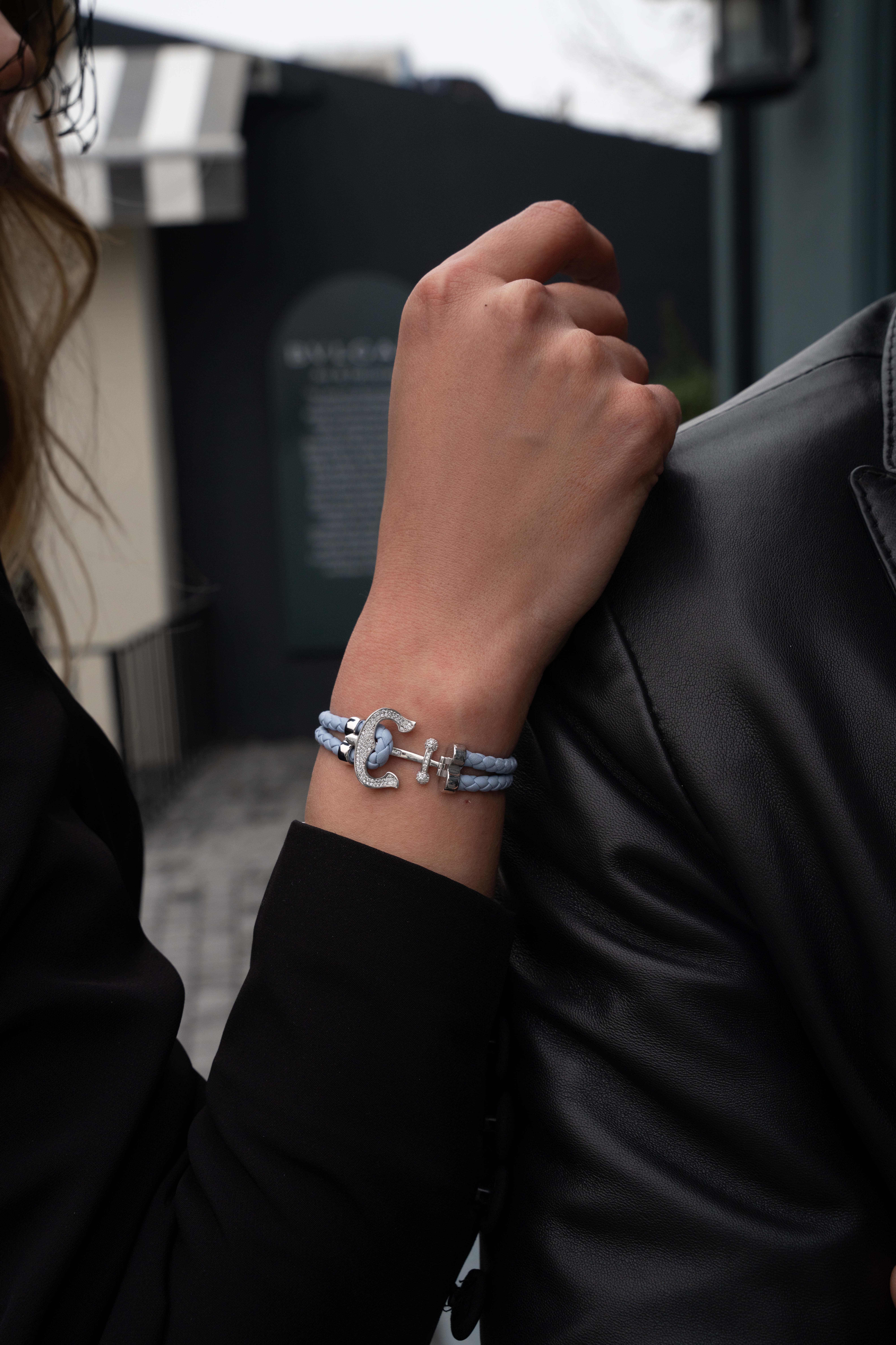 فرم نمادین لنگر در این طراحی، بهزیبایی با درخشش سنگهای سواروسکی تلفیق شده و هویتی متفاوت به آن بخشیده است. نگینهای ظریف این قطعه با تکنیک مخراجکاری، بهگونهای دقیق و بادوام در جای خود نشانده شدهاند تا جلوهای چشمگیر و ماندگار داشته باشند. بند چرمی با کیفیت بالا، قابلیت انتخاب در رنگهای متنوع را دارد تا متناسب با سلیقه و استایل شخصی شما باشد. همچنین این مدل امکان سفارش با سنگهای قیمتی همچون الماس یا یاقوت را نیز داراست. لنگر، نه فقط یک اکسسوری، بلکه یک امضاست.