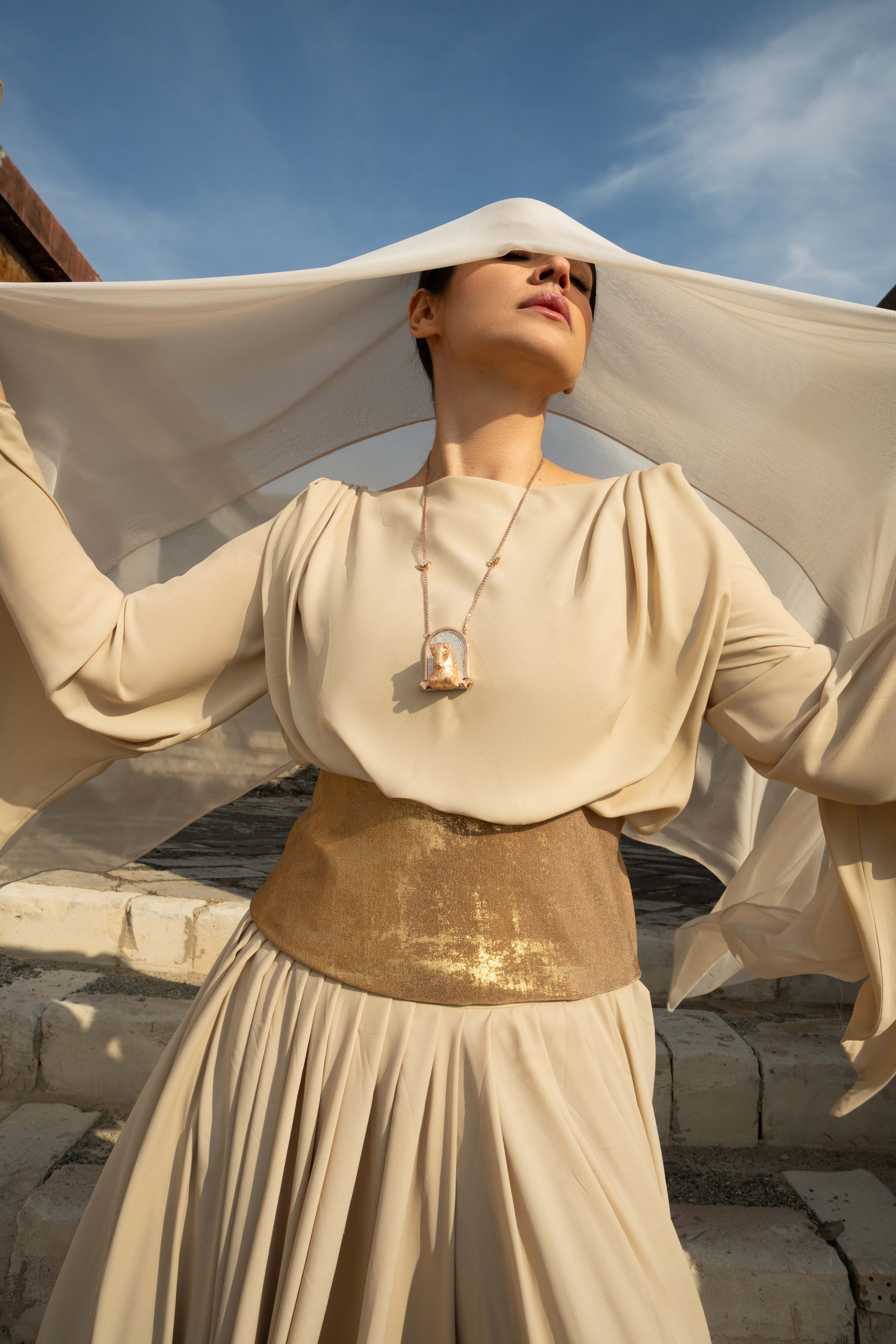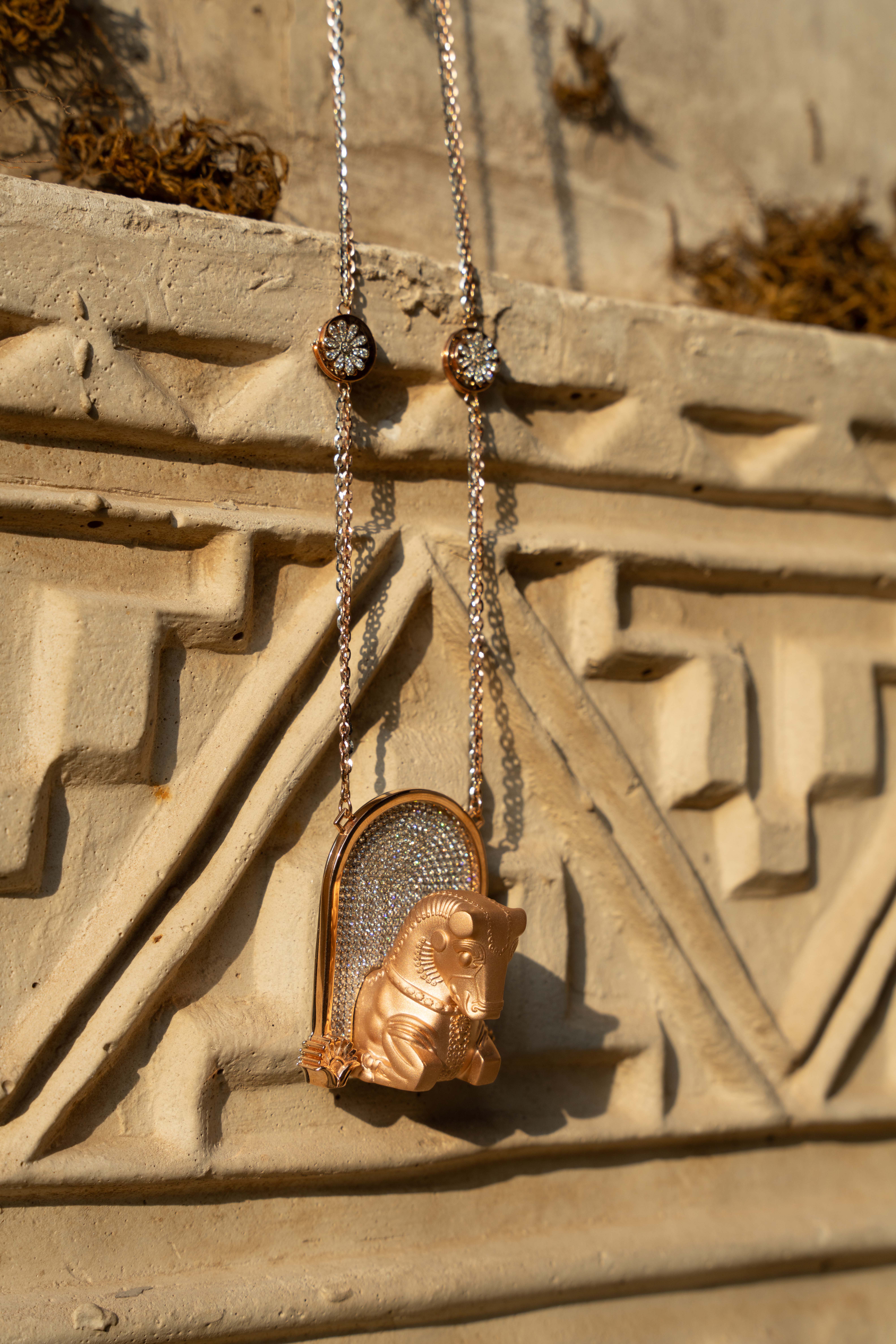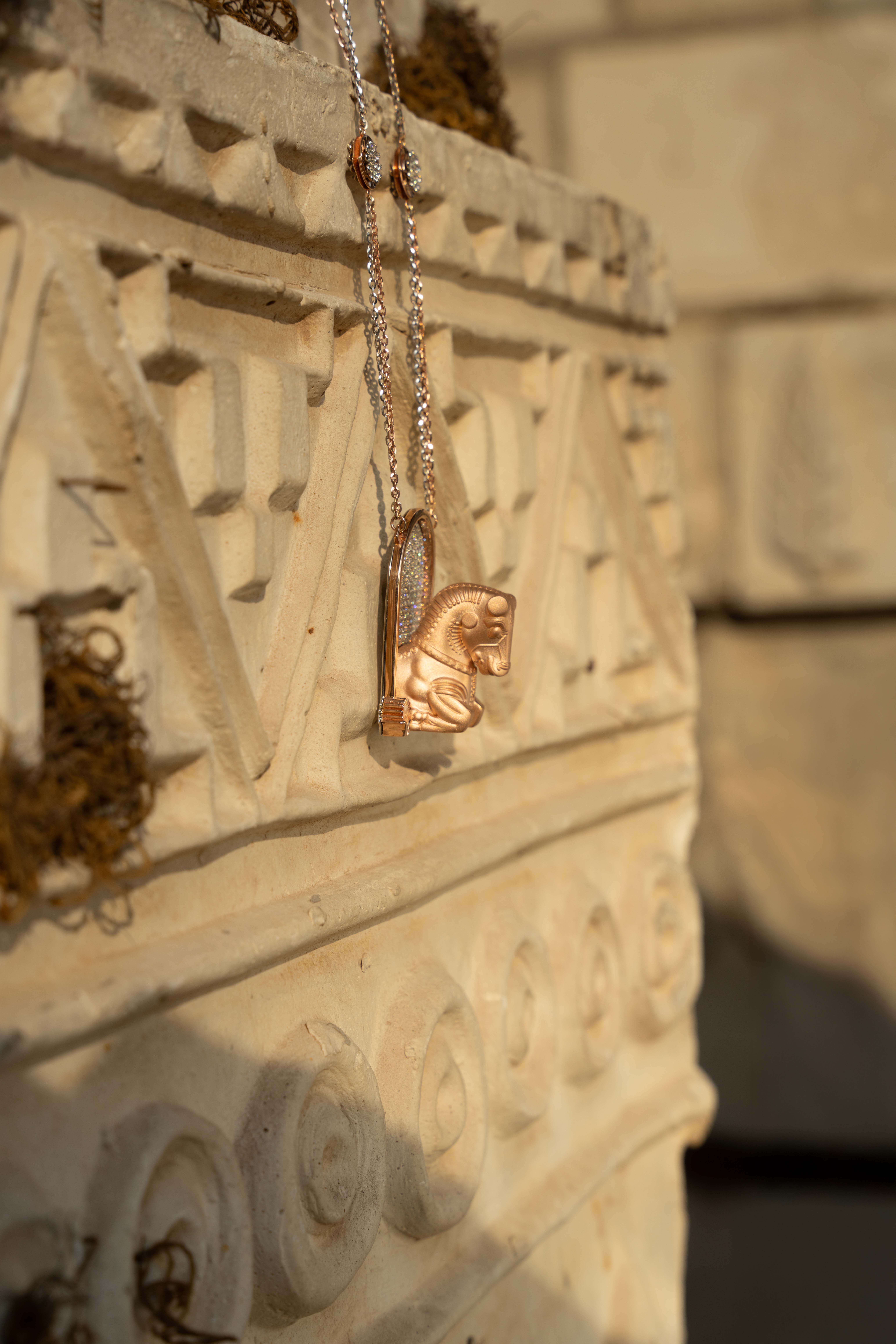 گردنبند پرسپولیسسرودهای به عظمت تاریخ ایران باستان این گردنبند بینظیر، برگرفته از ستونها و نقشبرجستههای پرسپولیس، پایتخت اسطورهای هخامنشیان است؛ مجموعهای که امروزه نماد هویت، قدرت و هنر ایرانی نزد جهانیان به شمار میرود. محصولی از کالکشن “ایران” که شکوه معماری سازههای سنگی پرسپولیس را در طلای طبیعی و نگینهای سواروسکی شفاف و درخشان جاودانه ساخته است. قرارگیری سنگها به روش دقیق مخراجکاری دستساز، تداعیگر نظم، استواری و پیوستگی تمدنی پرشکوه ایران باستان است. این اثر ارزنده، با هر جزئیاتش دعوتی است برای پاسداشت ریشهها، میراث فرهنگی و جشن گرفتن ماندگاری ایرانی بودن.
