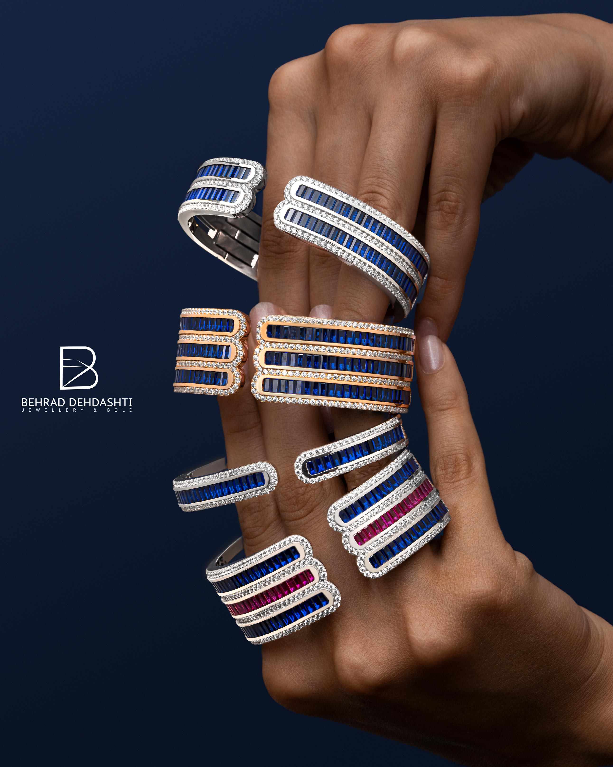 سرویس شایلین | Shayleen Serviceکالکشن آزورا، الهامگرفته از فرمهای معماری مدرن و رنگ لاجوردی، نمایشیست از ساختاری چندلایه، دقیق و جسور. طراحیای که در آن، سنگها مثل بلوکهای نور روی دست و گردن مینشینند، برای بانویی که میداند قدرت در جزئیات نهفته است.