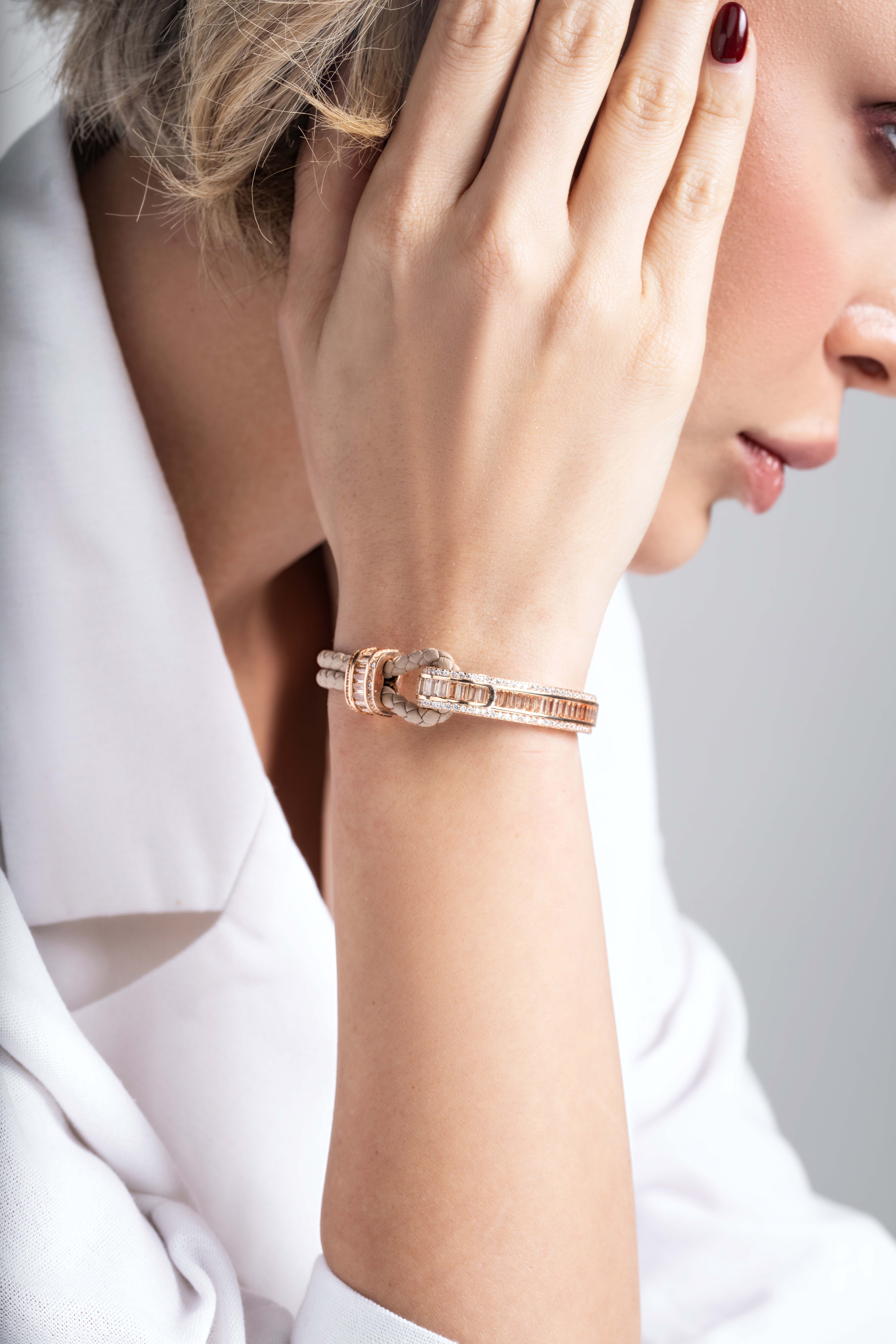 درخشش چشمگیر سنگهای سواروسکی، طراحی باگت و ظرافت بینظیر در مخراجکاری، دستبند شایلین را به انتخابی منحصربهفرد برای استایلهای خاص تبدیل کرده است. این دستبند با بند چرمی قابلسفارشیسازی در رنگهای متنوع عرضه میشود و رنگ سنگهای باگت نیز متناسب با سلیقه شما قابل تغییر است. شایلین علاوهبر نسخه کلاسیک، قابلیت سفارش با جواهرات اصل را نیز دارد تا جلوهای ماندگار و شخصیسازیشده به استایل شما ببخشد.