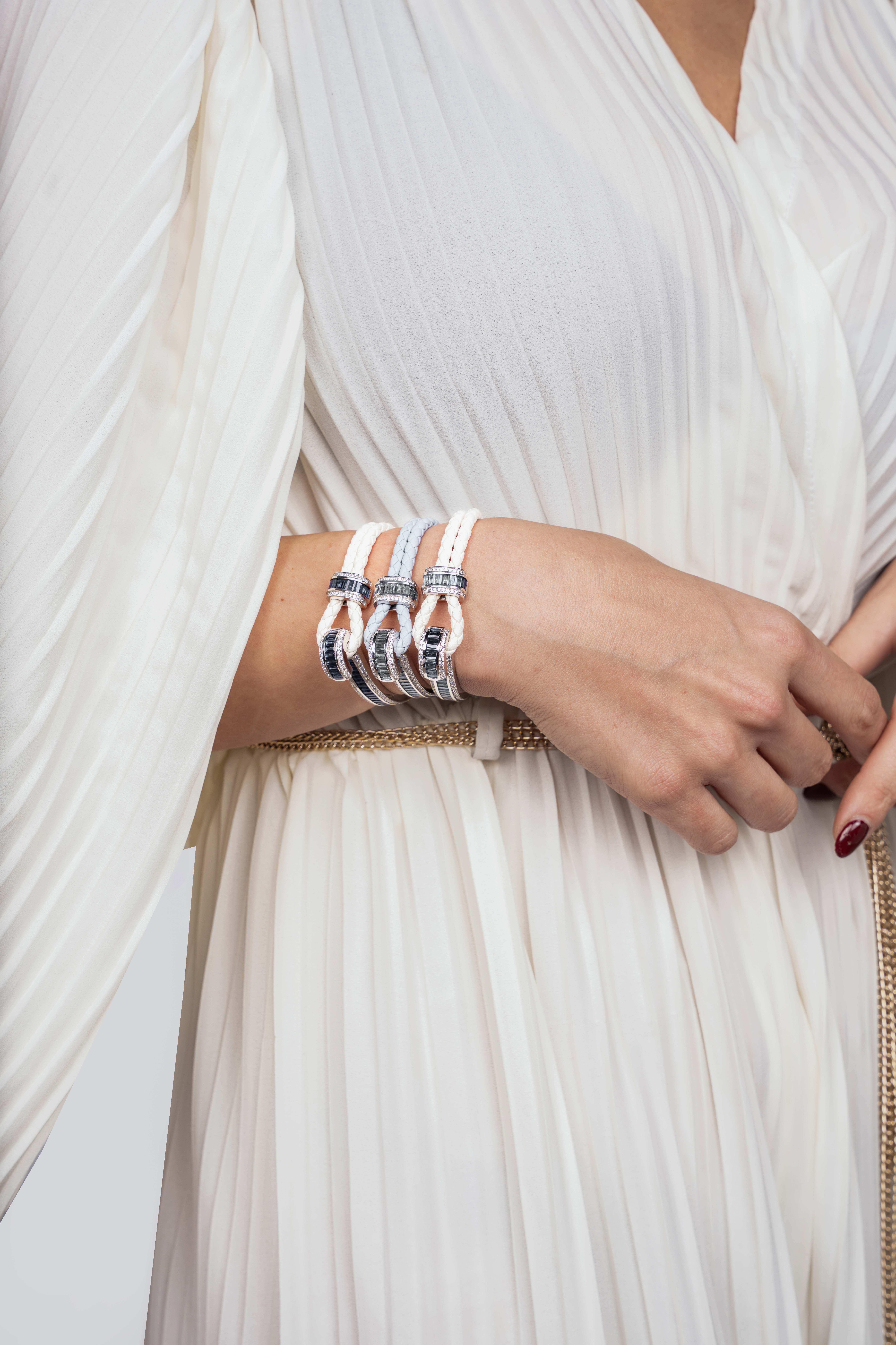 شایلین آیس سیلور/Shayleen Ice Silverاین دستبند با طلای سفید خودرنگ ساخته شده؛ به این معنا که رنگ درخشان و سردش نتیجه آبکاری نیست، بلکه از دل آلیاژ طلا بیرون آمده و همیشه براق و اصیل میماند. ساخت این قطعه با دقتی کمنظیر و توسط استادکاران مجرب صورت گرفته تا هر جزئیاتش نمایانگر کیفیت و دوام باشد. سنگهای سواروسکی با روش مخراجی و کاملاً دستی روی طلا نشستهاند؛ این روش باعث میشود هر سنگ با دقت میلیمتری در جای خود ثابت شود و حتی ضربه یا استفاده معمول، از زیبایی و سلامت آن کم نکند.